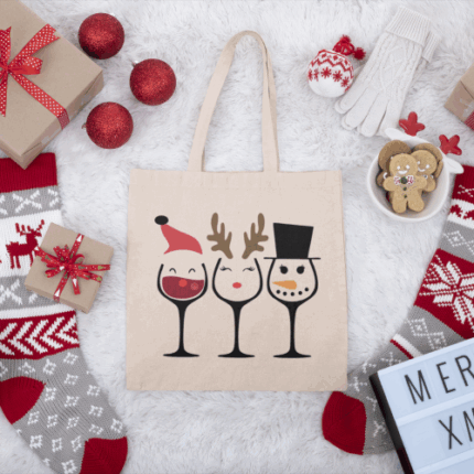 Saco de Algodão de Natal- Copos de Vinho