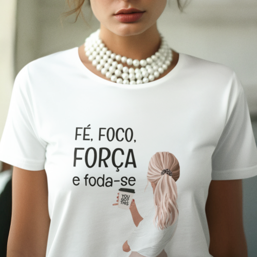 T-Shirt ” Fé, Foco, Força e Fod*-se”